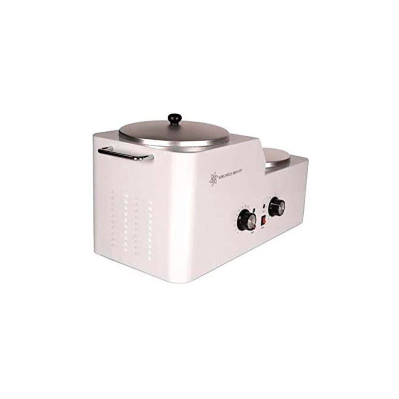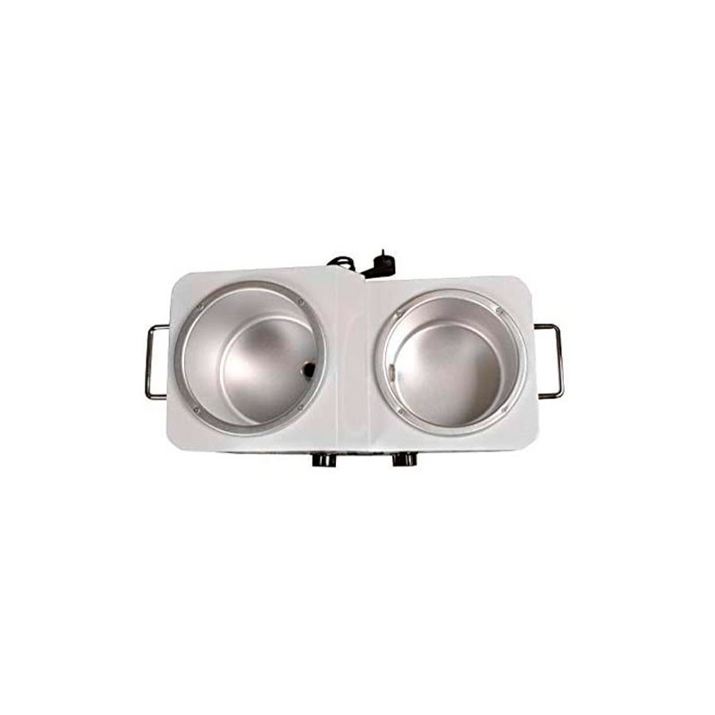 Pot 1: para calentar; Pot 2: para mantener el calentamiento. La perilla para el bote 1 comienza desde min. posición 65 ℃, parada en máx. posición 130 ℃; La perilla para el bote 2 comienza desde min. posición 45 ℃, parada en máx. posición 80 ℃.